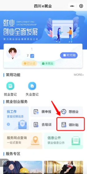 第二步,完成實名認證后,點擊首頁【領補貼】進入業務界面。